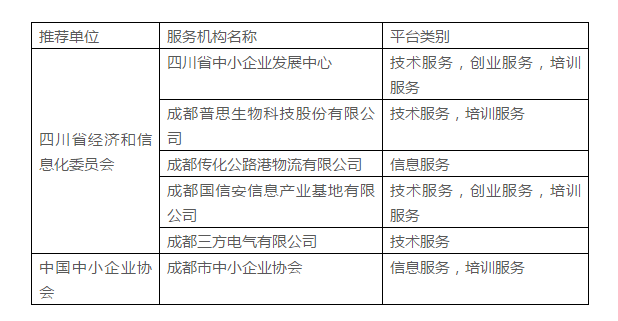 2017年度國家中小企業(yè)公共服務(wù)示范平臺(tái)名單