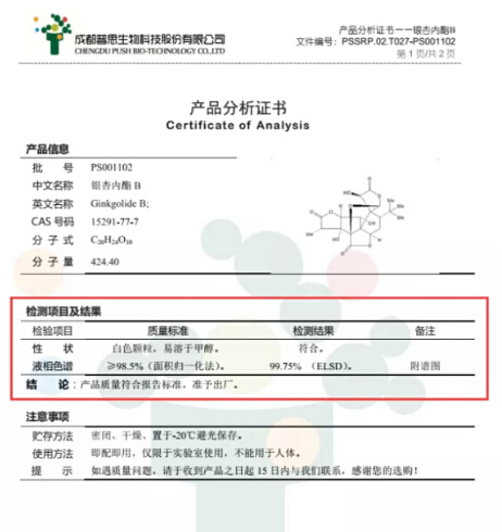 普思生物除了銀杏內(nèi)酯A、B、C、J和白果內(nèi)酯等銀杏葉天然活性成分,還有白果黃素、白果新酸、槲皮素、銀杏酚酸、銀杏雙黃酮等活性物質(zhì)。如果有需要,都可以在微信商城查到哦,當(dāng)然,我們的官網(wǎng)也是能夠檢索到的。